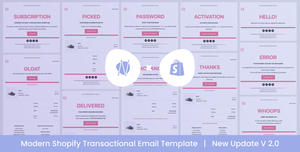 Notifice is A set of powerful email templates specially built to be integrated with Shopify, it also includes pure HTML files.